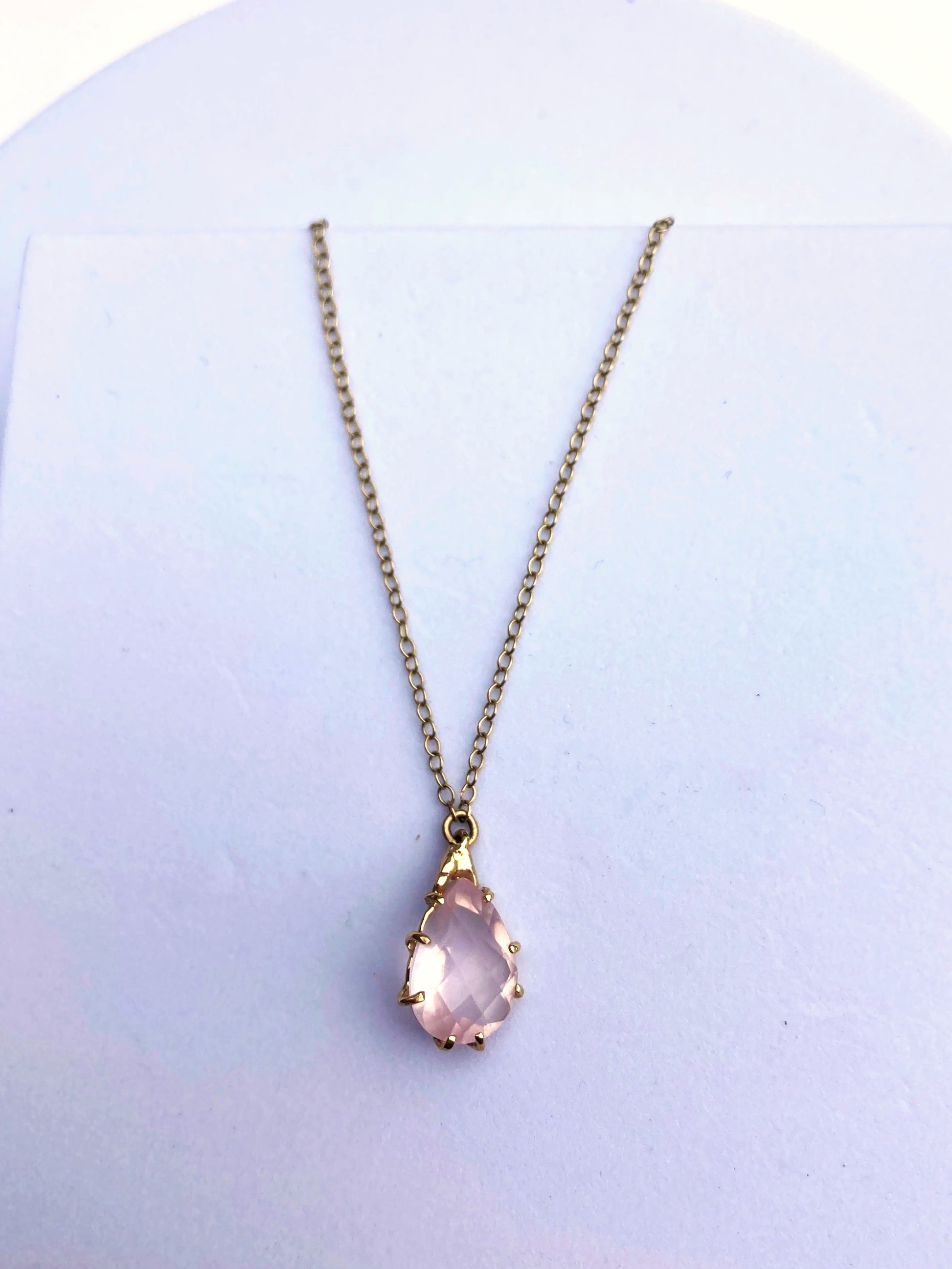 Pink Morganite Pear Shape Gold Pendant and Chain